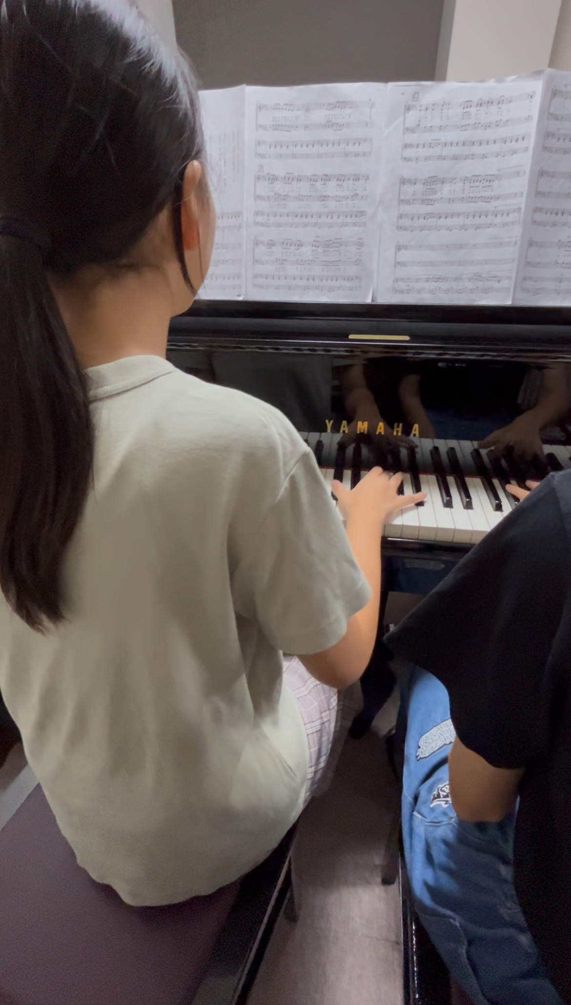 今日は、**「クラス紹介のときに流すバックミュージック」**を想定してピアノ伴奏の練習を行いました。