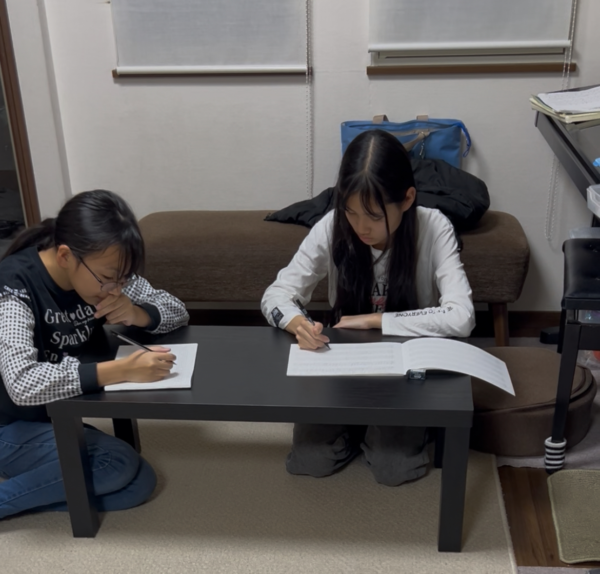 レッスンの前後が重なる、中学生の女の子2人