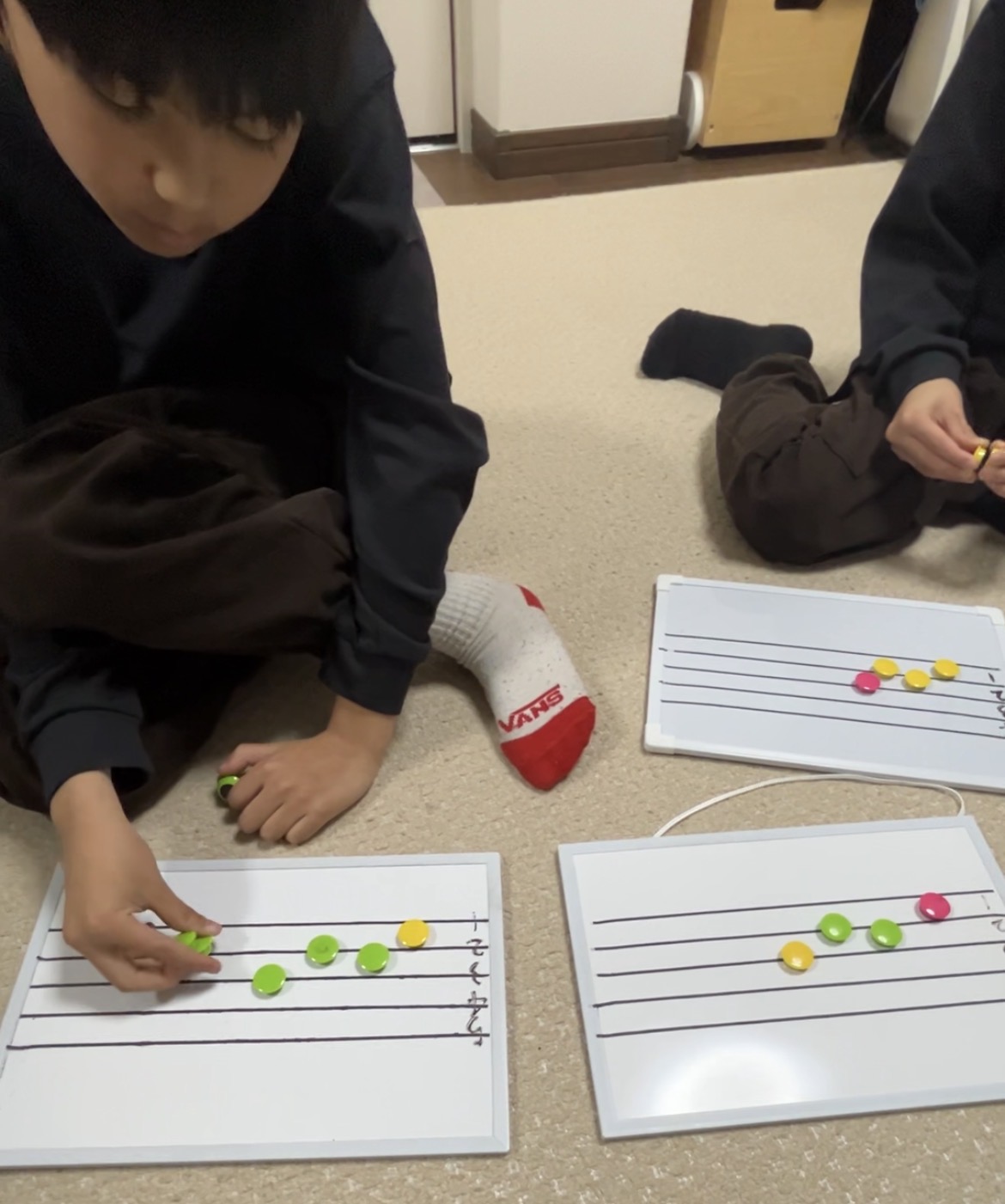 音符に見立てたマグネットを使って